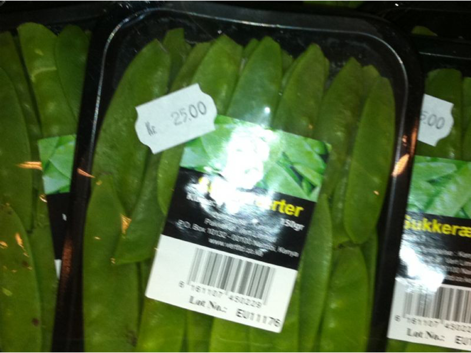 Lækre sukkerærter/Sugarsnaps/Mangetout i bakke