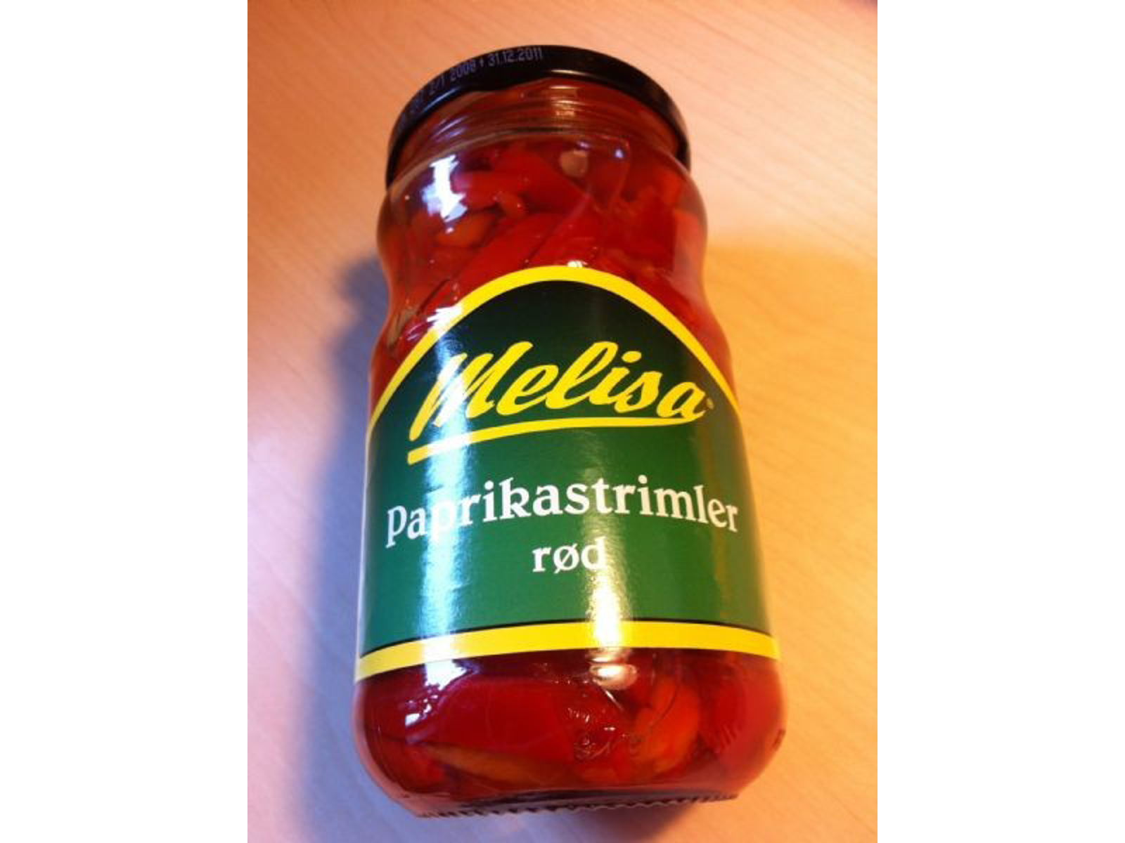 Ingredienser: Rød paprika, vand, salt, sukker, vineddike og smagsforstærker E 509.